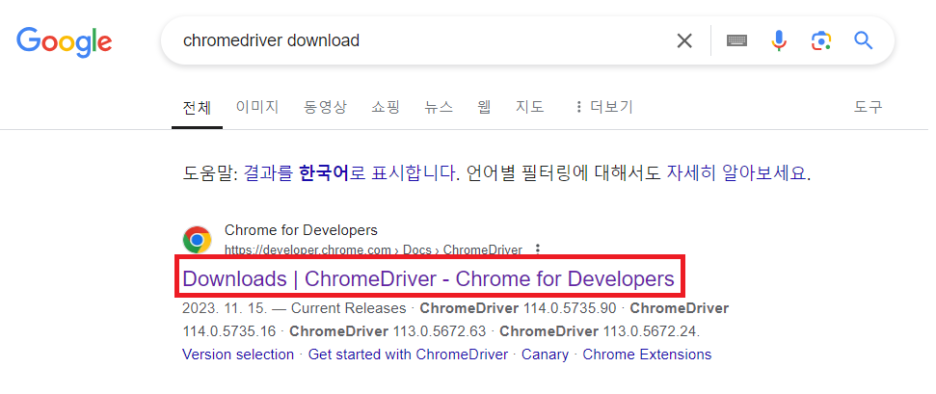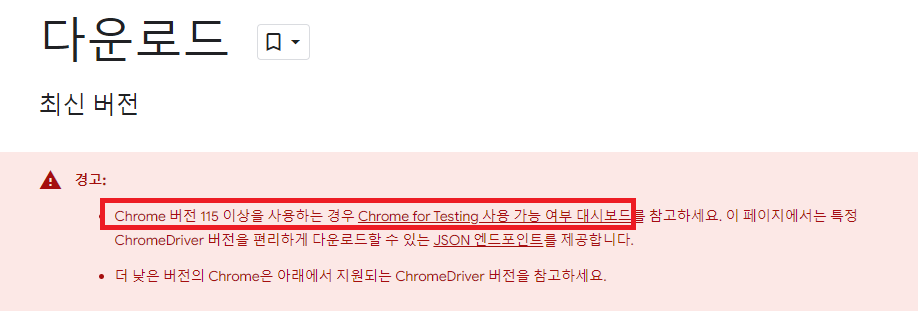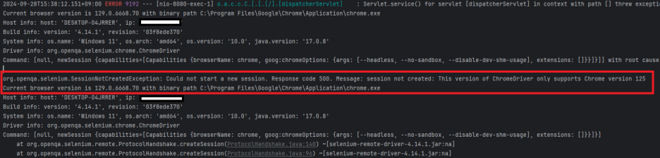 현재 Chrome의 버전은 129.~인데 ChromeDriver의 버전은 125.~만 지원한다고 합니다.