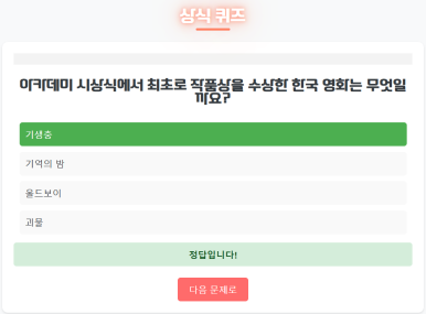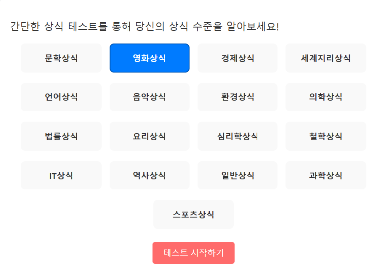 이번에는 또 무엇을 만들어볼까? 고민을 하다가 상식 테스트를 만들게 되었어요.