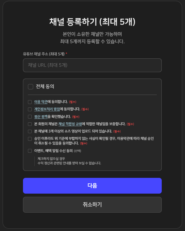 - 채널 등록하기 클릭