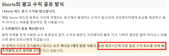- 쇼츠 길이는 40초 이상을 권장한다네요.