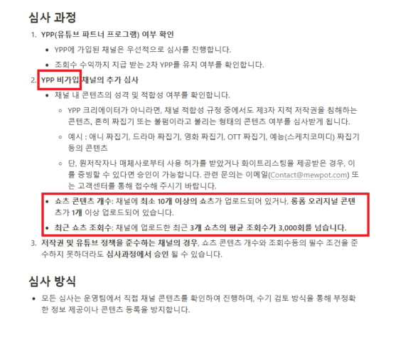 - 쇼츠 10개와 평균 조회 수가 3천이 넘어야 한다고 하네요.