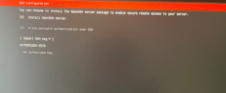 - 추후에 SSH 접속할거라서 Install OpenSSH server 체크 후 Enter