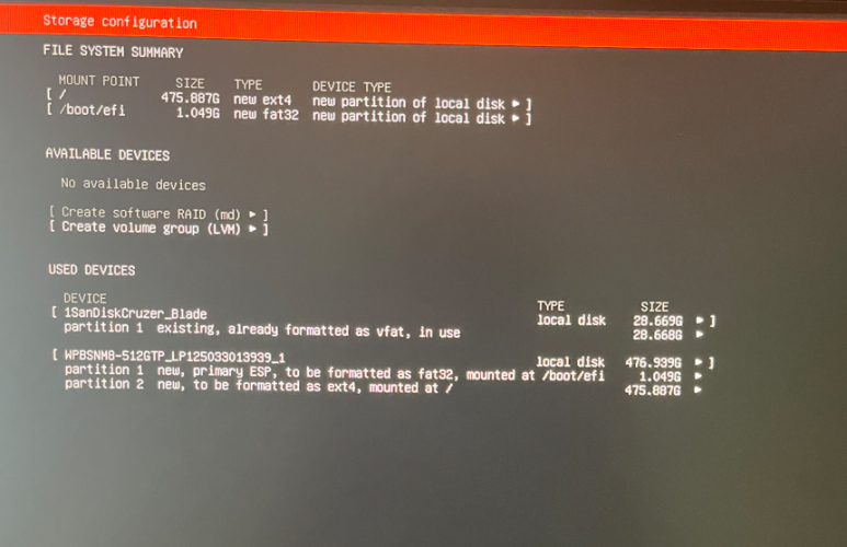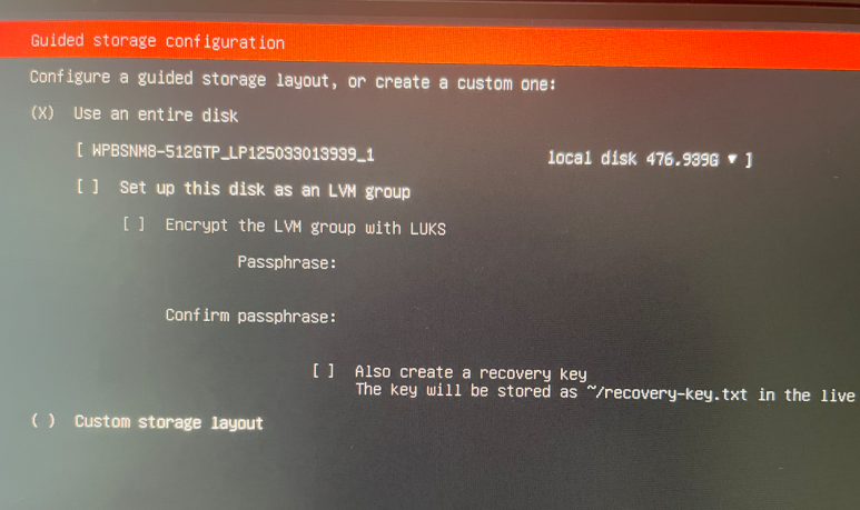 - Set up this disk as an LVM group은 체크 해제함. 체크 해제할 땐 스페이스바