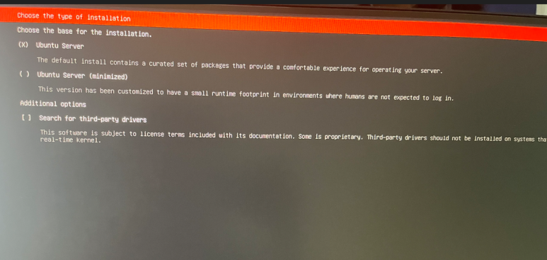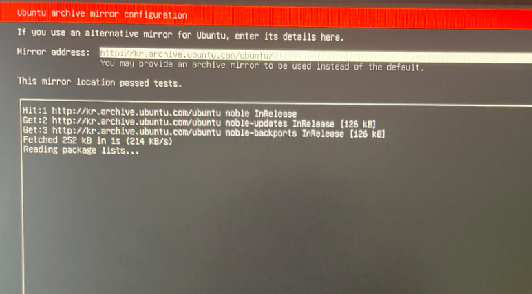 - 설치 타입: Ubuntu Server 기본설정 그대로 Enter
