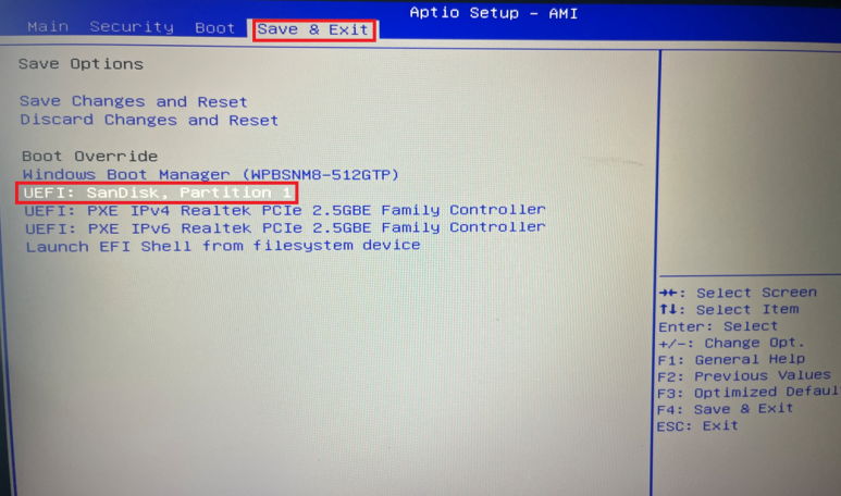 - Save & Exit 에서 UEFI: USB명칭 선택후 Enter