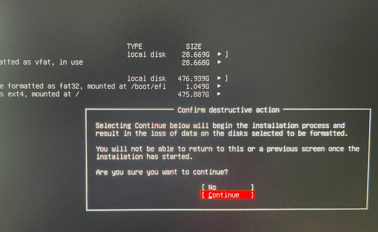 - Failed 뜨길래 알아보니 USB를 PC에서 뽑은 후 Enter해서 다시 Reboot