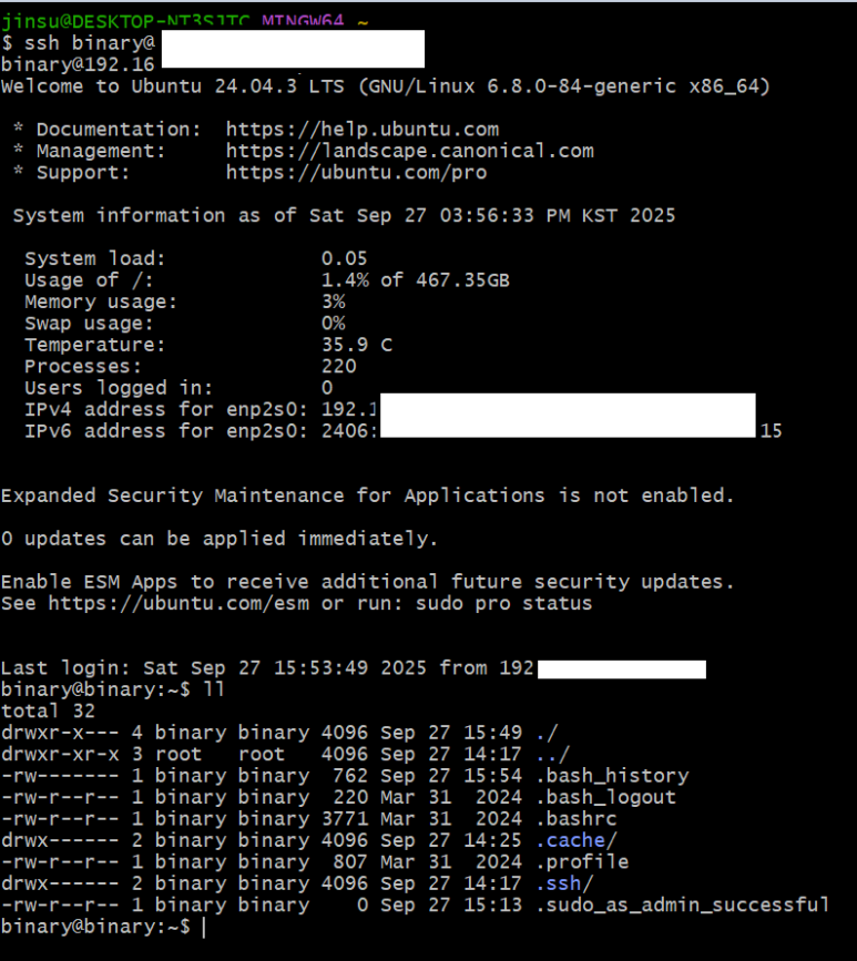 이제 작업 PC에서 SSH로 접속해서 서버PC는 헤드리스로 사용할거기 때문에 아래 설정을 해줬다.