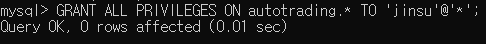 아래와 같이 명령어를 입력하면 사용자에게 모든 권한을 부여한다.