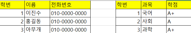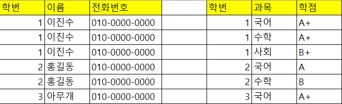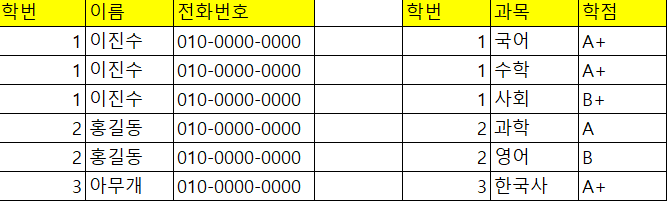 - 한명의 학생은 여러개의 과목을 수강할 수 있다.