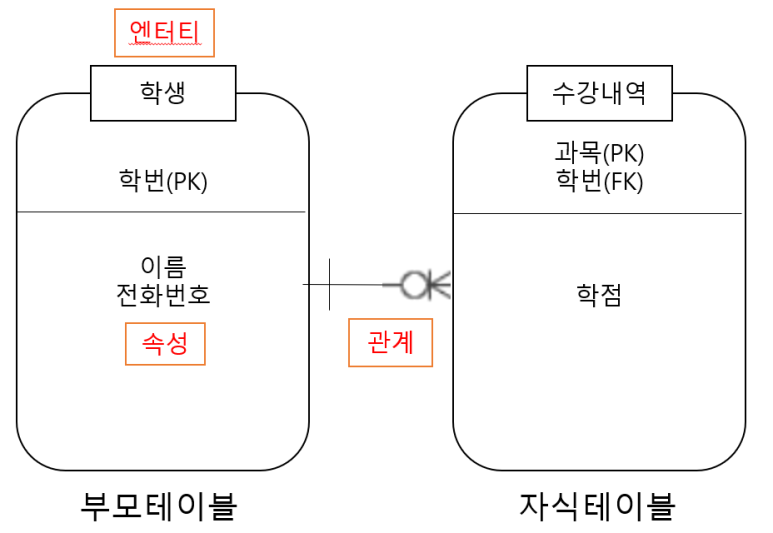 - 속성(Attribute): 엔터티가 가지고 있는 특성이나 데이터