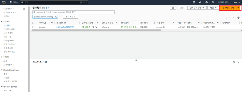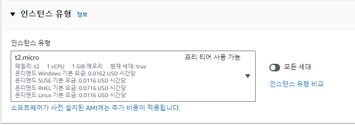 - 그 아래 인스턴스 유형도 마찬가지로 "프리티어 사용가능"으로 해야 무료서비스입니다.