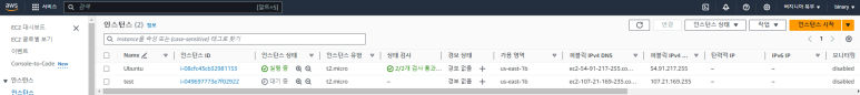 - 그러면 맨처음에 EC2 들어가면 방금 생성한 test 인스턴트가 "대기중"으로 생성됨