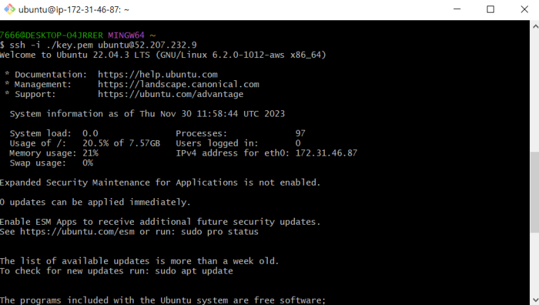 - ssh -i ./test.pem ubuntu@3.88.163.10