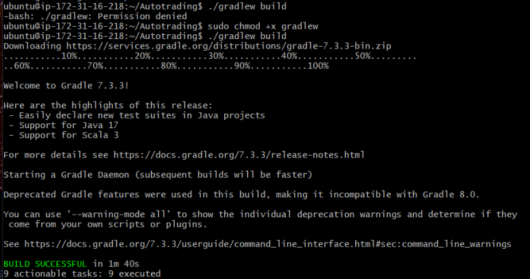 - 다시 ./gradlew build 명령어로 빌드를 진행한다.
