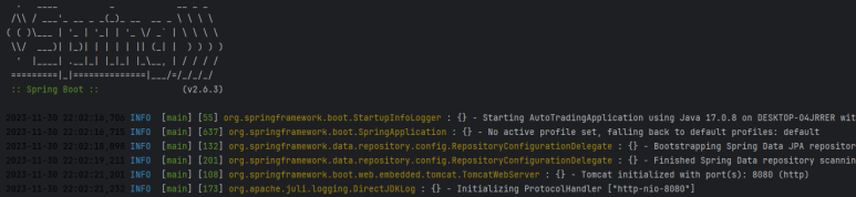 - java -jar AutoTrading-0.0.1-SNAPSHOT.jar(본인 자르파일 명칭)