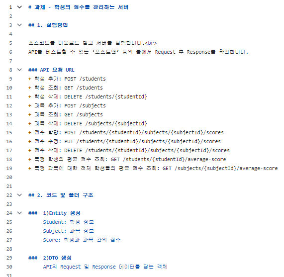 개발자 과제 전형을 진행하면서 md 파일을 작성하였는데요.