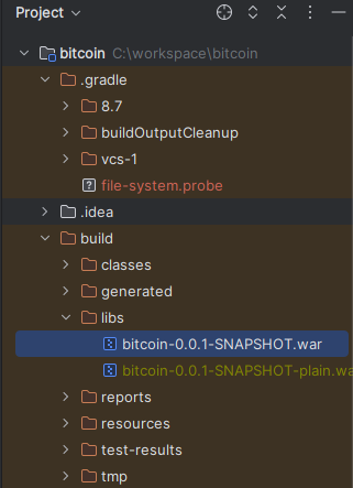 프로젝트 - build - libs 폴더 안에 war 파일이 생성되어 있습니다.