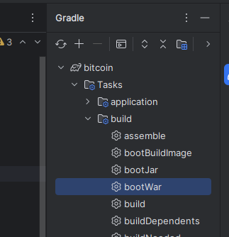Gradle에 보면 build 하위에 bootWar가 있습니다.