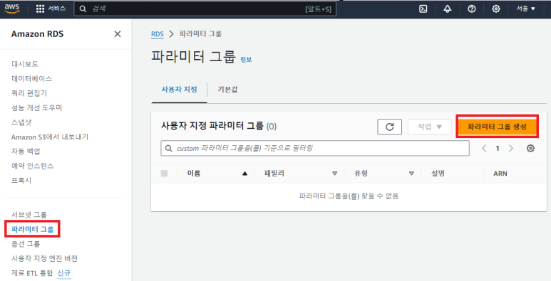 그래서 파라미터 그룹 세팅하러 가면 됩니다.