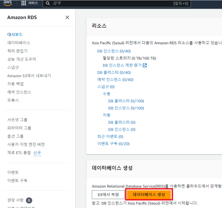 AWS에서 DB를 연결하지 않았고 알아보니 AWS RDS라는걸 구축해야 하더라구요.