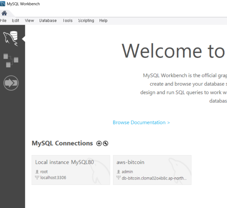 그러면 Workbench에 방금 연결한 DB가 생성됩니다.