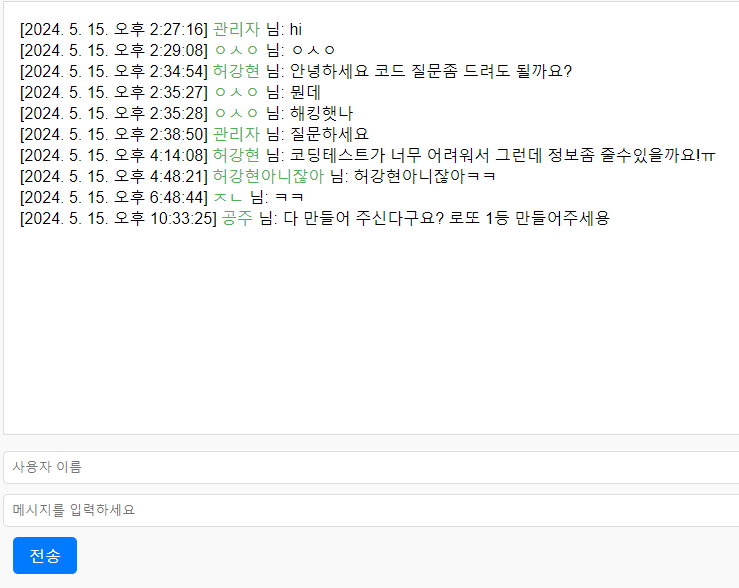 - 모든 메시지는 실시간으로 업데이트됩니다.