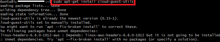 - growpart 명령어로 파티션의 크기를 늘립니다.