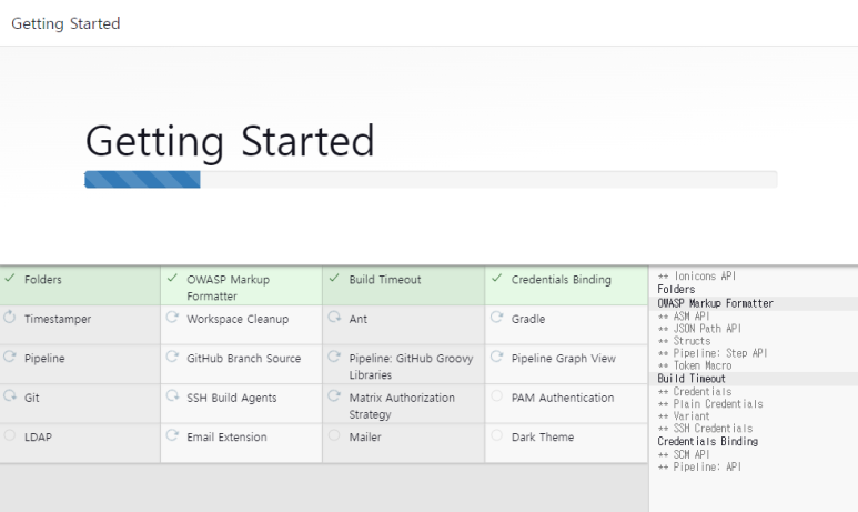 젠킨스 플러그인 설치 방식인데 추천해 주는 걸로 했습니다.