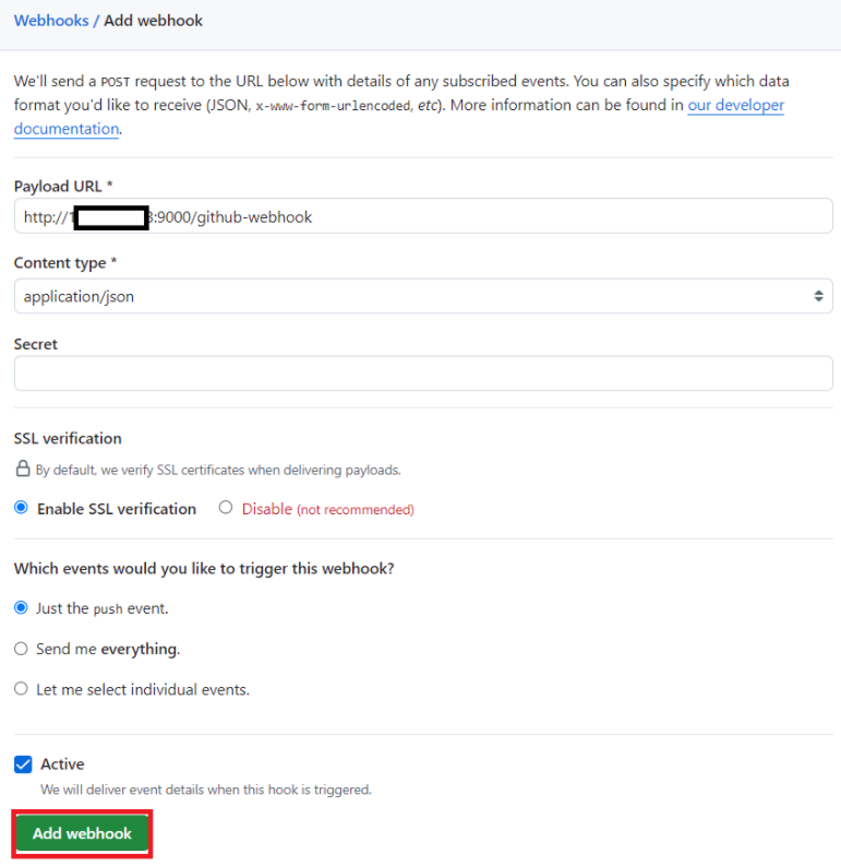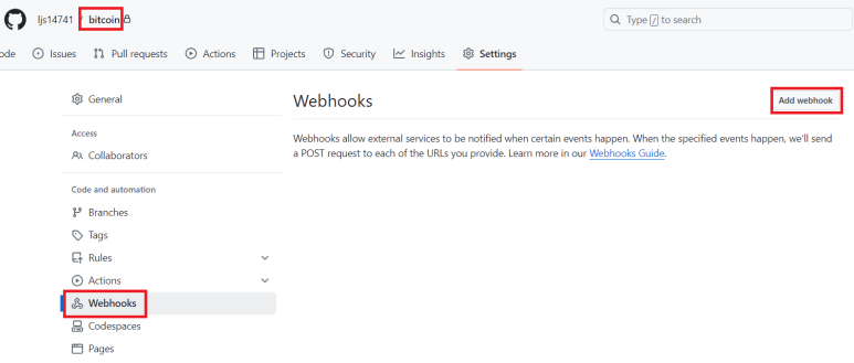 - Github 프로젝트 - Settings - Webhooks - Add webhook