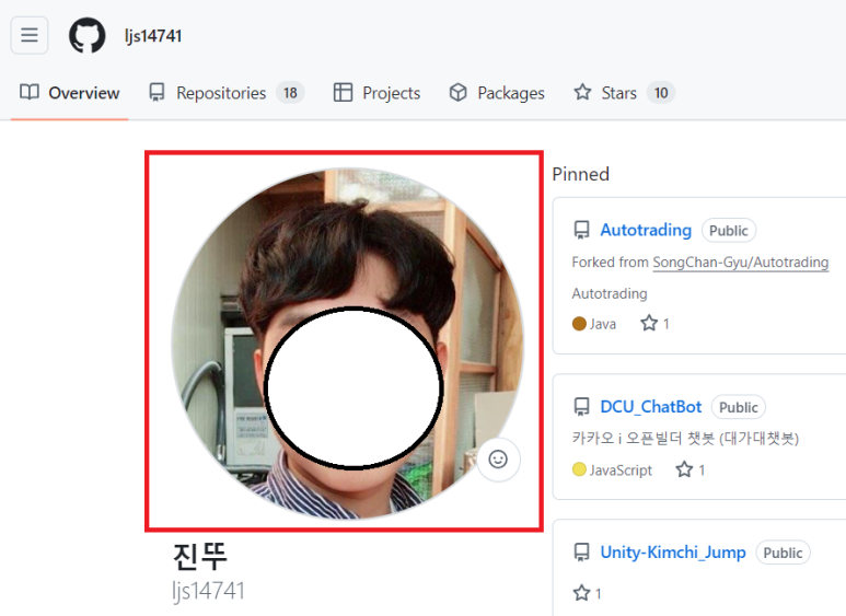 - 깃허브에서 프로필 사진을 클릭합니다.