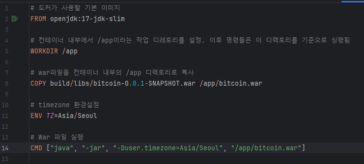 - 프로젝트 최상단에 Dockerfile을 생성합니다.