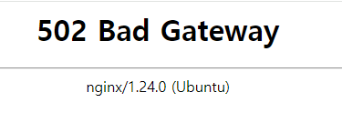 AWS 서버 중단 시 커스텀 화면 보여주기 서버를 내렸다가 재기동 하다보면 502에러가 발생해서 사용자가 어떤 에러인지 짐작할 수 없다고 판단을 하였습니다. 그래서 커스텀한 화면을 보여주려고 합니다. 아래에 그 방법을 정리해보겠습니다.​​저는 AWS EC2(Ubuntu), Docker 환경에서 진행하고있습니다.저는 Nginx를 사용하고 있고 이미 설치가 되어있습니다.설치부터 하셔야하는 분들은 아래 명령어를 사용하시면 됩니다. sudo apt update sudo apt install nginx​1. Nginx 환경설정이후 Nginx 설정 파일을 수정하면 됩니다.cd /etc/nginx/conf.dsudo vi default.conf ​2. Dockerfile 수정Dockerfile에서 html파일에 접근..